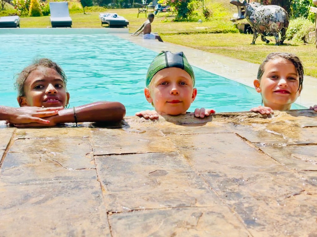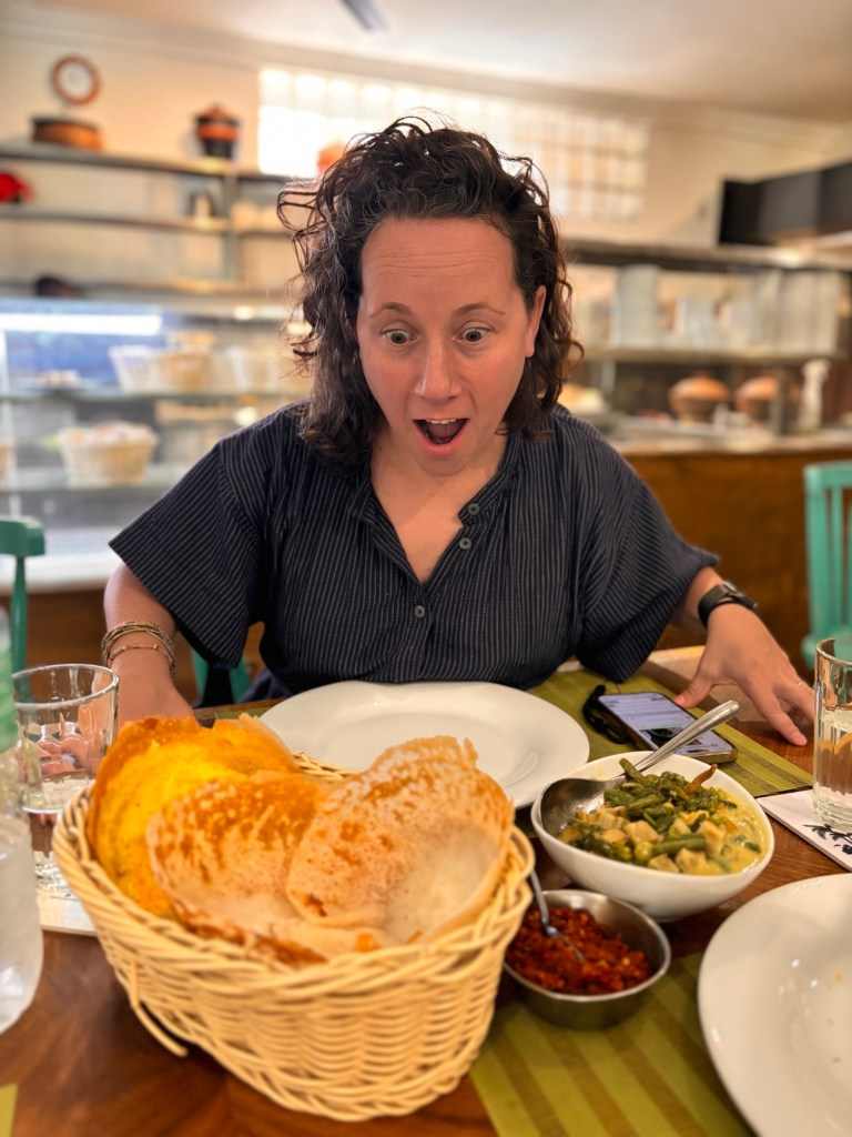 In Habarana, we were lucky to stay in another beautiful spot, this time a 2-bedroom villa in the jungle with monkeys (and mosquitos) joining us for breakfast. We continued to go slow, doing school, taxes, and other exciting things and it was nice to be in such a lovely spot with wraparound views of nature.  We did manage to get out a bit, however. We went on a half-day jeep safari to see Asian elephants — because you can never see enough elephants — and we were lucky to have more close encounters with baby elephants, in particular.