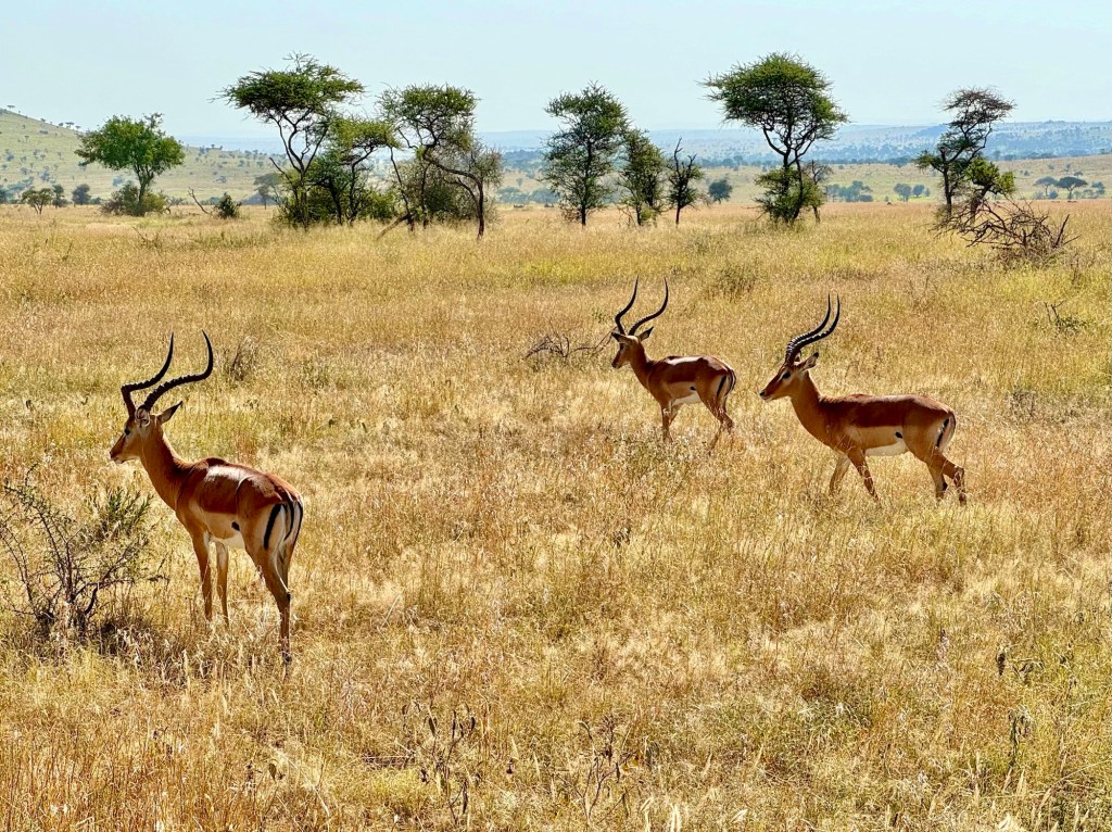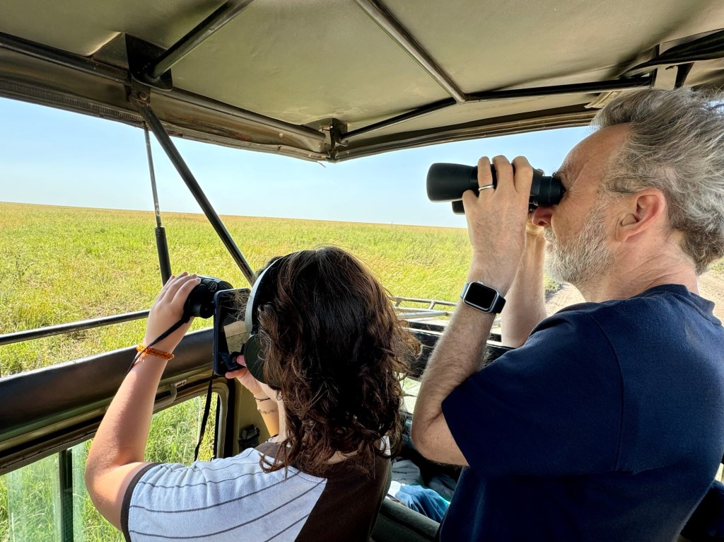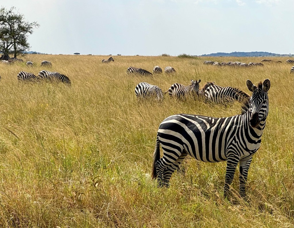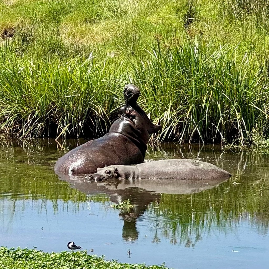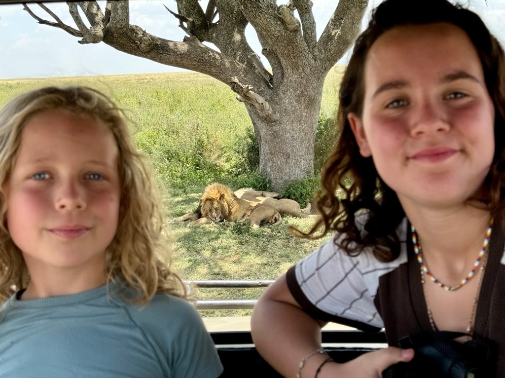 We then spent two nights in the Serengeti which was similarly spectacular. We saw many of the same animals but in a different way. The landscape is endless and beautiful, and some of the herds were enormous. We frequently had groups of animals surround us as they crossed the road. We were particularly moved by close-up encounters with large groups of elephants, zebras, and giraffes. We also got very close to some lions, Dev’s spirit animal and number one priority.  We finished the day with a swim in the lodge pool overlooking the Serengeti.