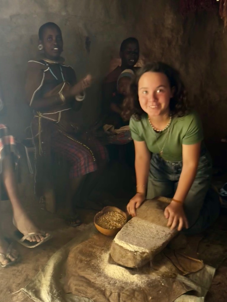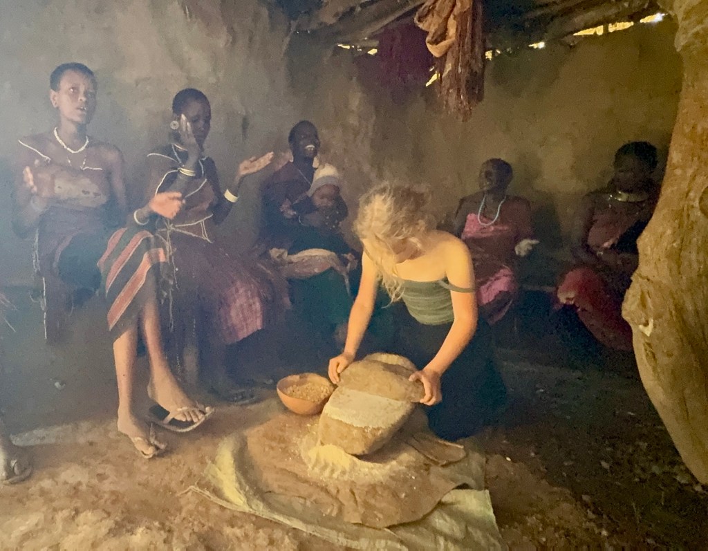 For our last day of the trip, we went to the Lake Eyasi region to visit two tribes who are still living according to their traditional ways.  The Hadzabe, who are hunters and gatherers, have a language that uses clicking which is super beautiful, but not when we tried to do it. They taught us about the different arrows they use for each animal and then took us out hunting with them.  After a staggering kill count of one bird, they kindly gave us some archery lessons. We then went to visit the Dagoota tribe, who are known for their blacksmith skills (and trade arrowheads with the Hadzabe in exchange for food).  They came from the Nile region and used to live with the Maasai people before conflict drove them apart.  The women asked us questions and shared what their lives were like, and then gave us some lessons in grinding corn. The men showed us how they melt down metal and turn it into arrowheads, jewelry, and other functional items.