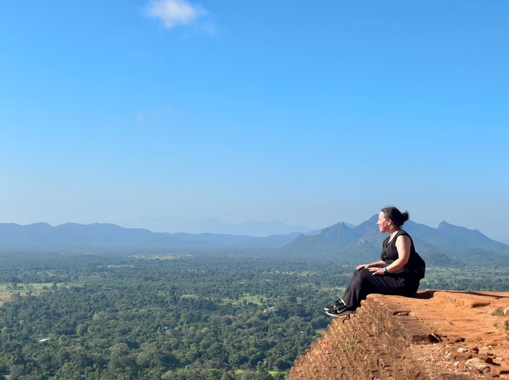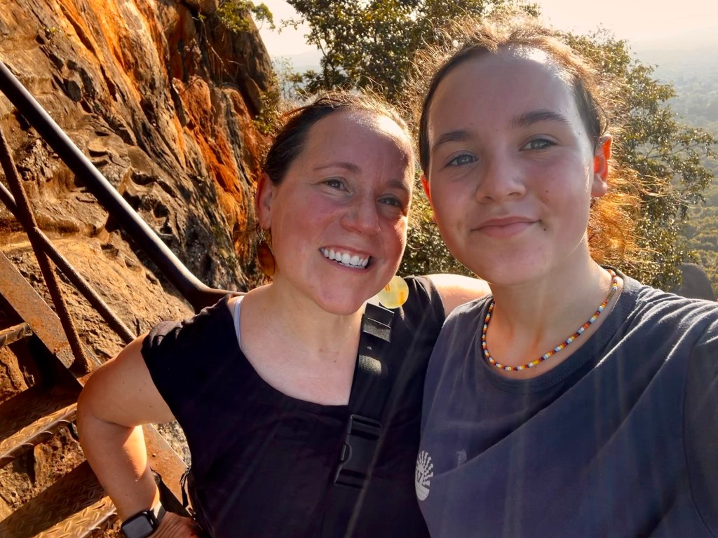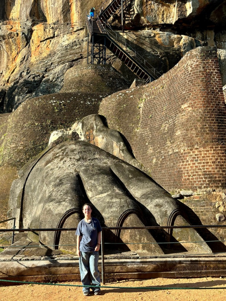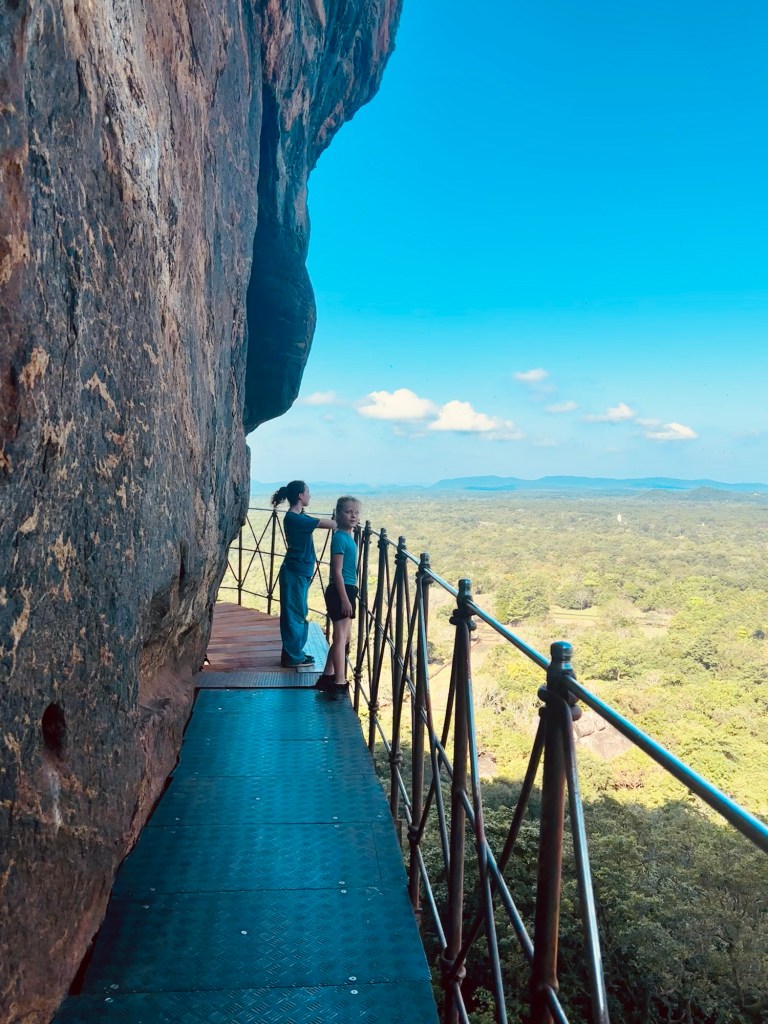 And on our last full day we climbed Sigiriya Lion Rock, an ancient rock fortress dating back to the 5th century AD. The history behind the fortress is pretty intense: in essence, the king’s son who was born out of wedlock was upset he would not inherit the throne; he killed his father and took over; and he created the fortress as a new capital to avoid the wrath of the other son (who eventually returned and defeated him). The entrance to the fortress was a huge lion but only the paws remain. We were initially worried about the 1200 steps — and I was worried about the height — but it was all pretty manageable.  At the top, the view was breathtaking (or was that the steps?) and we were able to FaceTime with AR and the kids as we remembered our late Uncle K at one of his favorite spots.