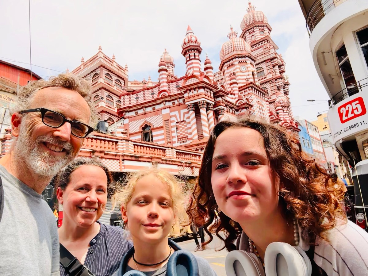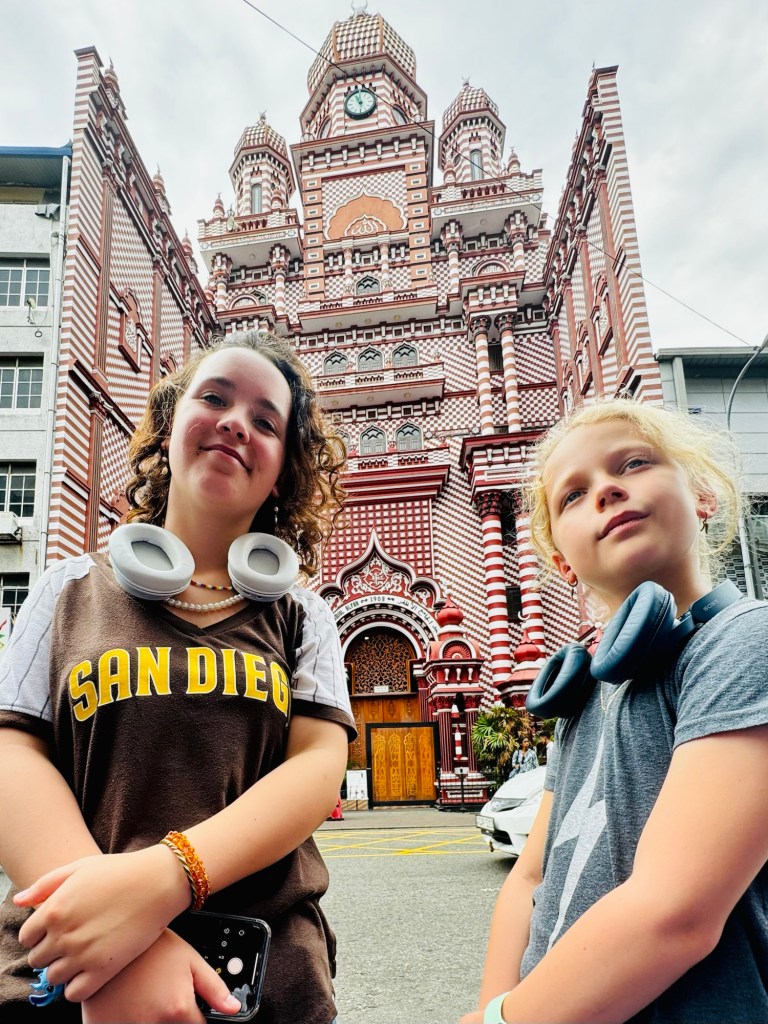 The guide for our scheduled food tour got sick but he kindly walked us through the tour via video and we still learned a lot, including that Sri Lankan food (and tea) is delicious with incredible flavor and spice. We also visited Gangaramaya and Seema Malaka, a Buddhist temple complex.  The Gangaramaya Temple is famous for many reasons, including its varied architecture and that its Bodhi tree is believed to be where the Buddha meditated to reach enlightenment. Seema Malaka is nearby on the lake and is used more for meditation purposes, rather than worship.  It was redesigned in the 1970s by Geoffrey Bawa, arguably Sri Lanka’s most famous architect.  We also made quick visits to Viharamahadevi Park – mainly because of the name which has “Devi” in it — and the Jami Ul-Alfar Mosque in Pettah Market with its distinctive red and white exterior. It felt a bit like the counterpart to our beloved black and white striped church in Sienna, Italy.