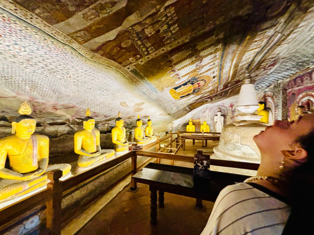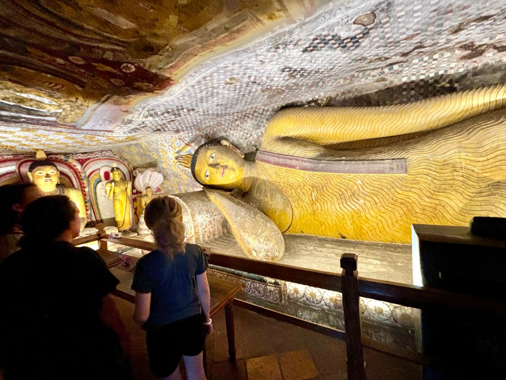 We spent the rest of our trip in Habarana, an area known as the “cultural triangle.”  We had a particularly nice tuk-tuk driver on our last day in Colombo who said he had a car so we hired him for the rest of the trip. He showed up with a fancy, decked out van that thrilled the kids so we knew we were off to a good start.  On the way to Habarana, we stopped to visit the Dambulla Cave Temple which consists of five Buddhist cave shrines, each with beautiful statues and brilliant, detailed murals covering the entire caves. The shrines have been used by monks since the 3rd century BCE and continue to be active today.