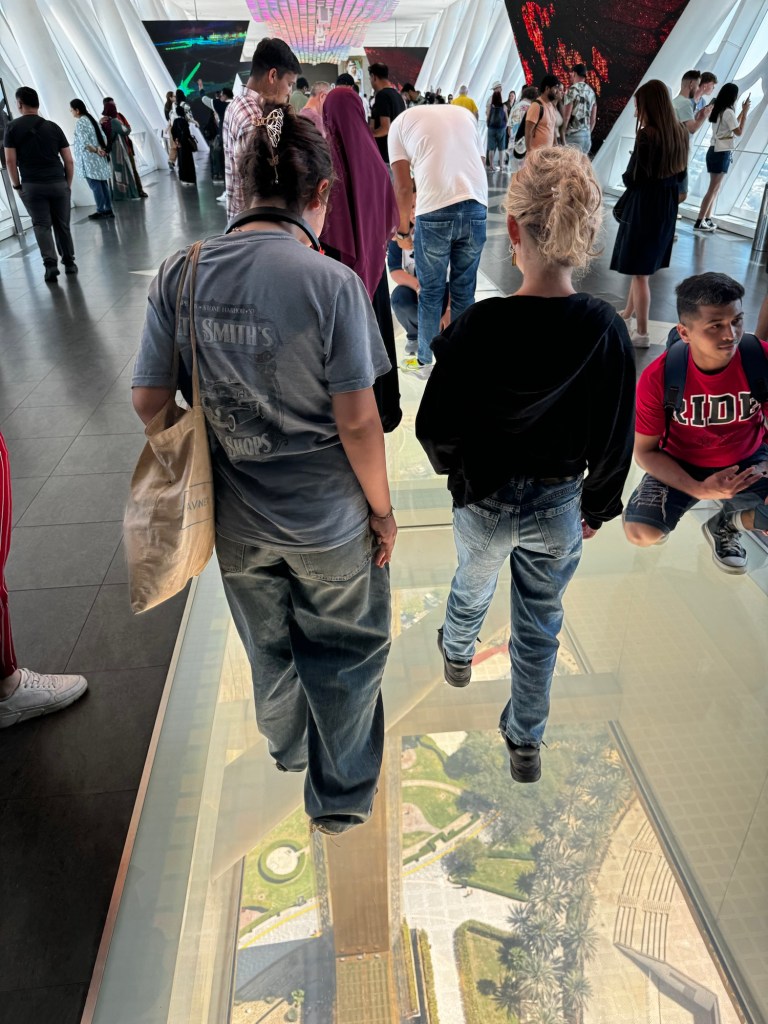 We did spend a couple nights in Dubai. While there, we looked up at the tallest building in the world (Burj Khalifa) and visited the largest mall in the world. We also went inside the Dubai Frame which is a huge building shaped like a frame where you can walk across the top which has glass floors. Looking through each side of the frame you can see the “old” part of the city (1960s) and the “new” part (last 20-25 years).