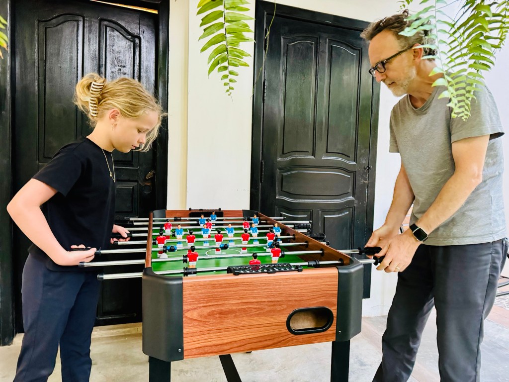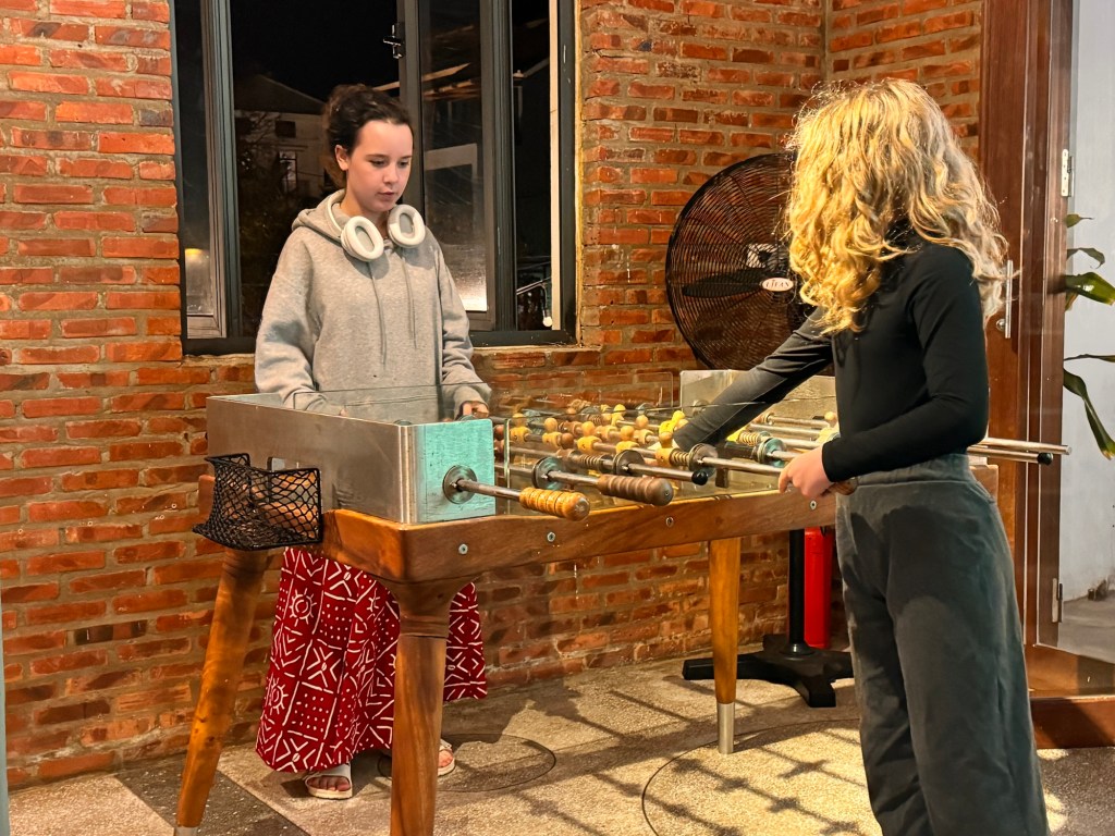 We also rented a scooter for the entire month and it has made even the most basic errands a fun adventure.  Driving through the rice fields is a particular treat, passing cows and water buffalos along the way.  We also found a place nearby to play foosball and went to see the new Minecraft movie.  Dev agreed it was fun but it was not like the *real* Minecraft.
