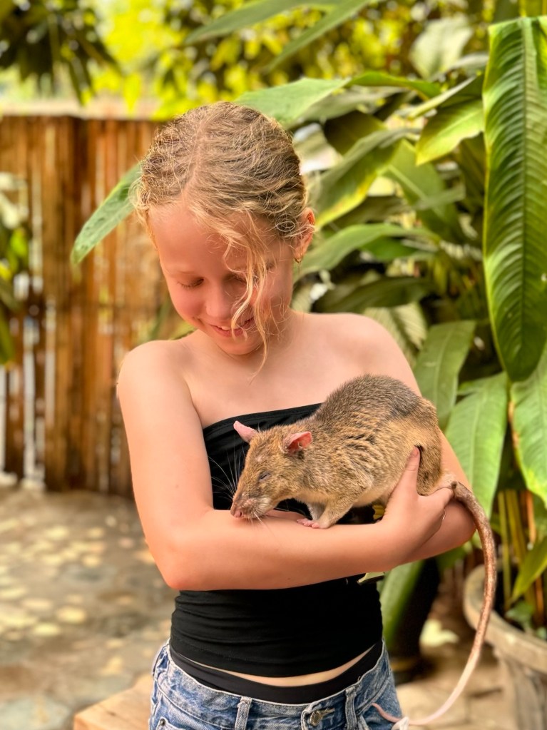 We did a couple other things that were big hits in Siem Reap.  One was going to Apopo Visitor Center, an amazing organization that trains African Giant Pouched Rats (or, as they call them, “heroRATS”) to detect landmines.  We watched a demonstration of the rat’s skills, learned about the history and scope of landmines in Cambodia, and had an opportunity to cuddle with the rats.  We immediately searched to see if we could get one as a pet in NYC (answer: most likely not).  To stay on theme with unicorns, death, and genocide, we also went to see Phare Circus, where the talented performers are graduates of a free vocational school started by refugees returning after the Khmer Rouge.  We even got special backstage passes to go behind the scenes where the magic happens before the show!  It was wonderful to meet all of the people that make the show happen, try on costumes, and see the performers warming up.