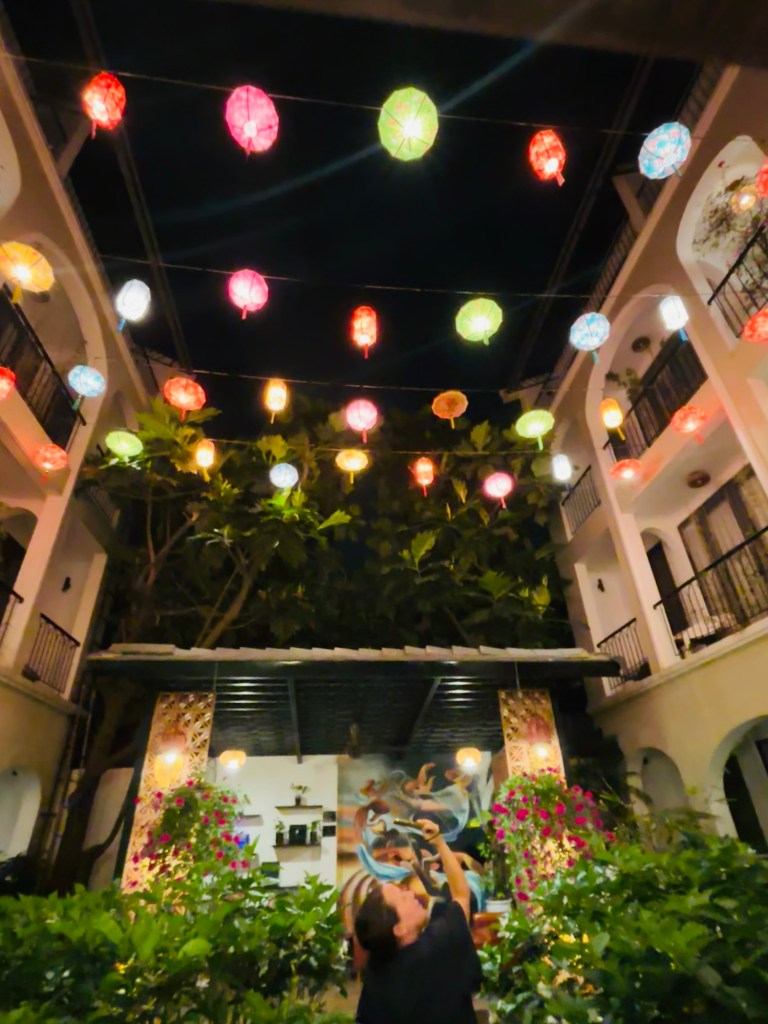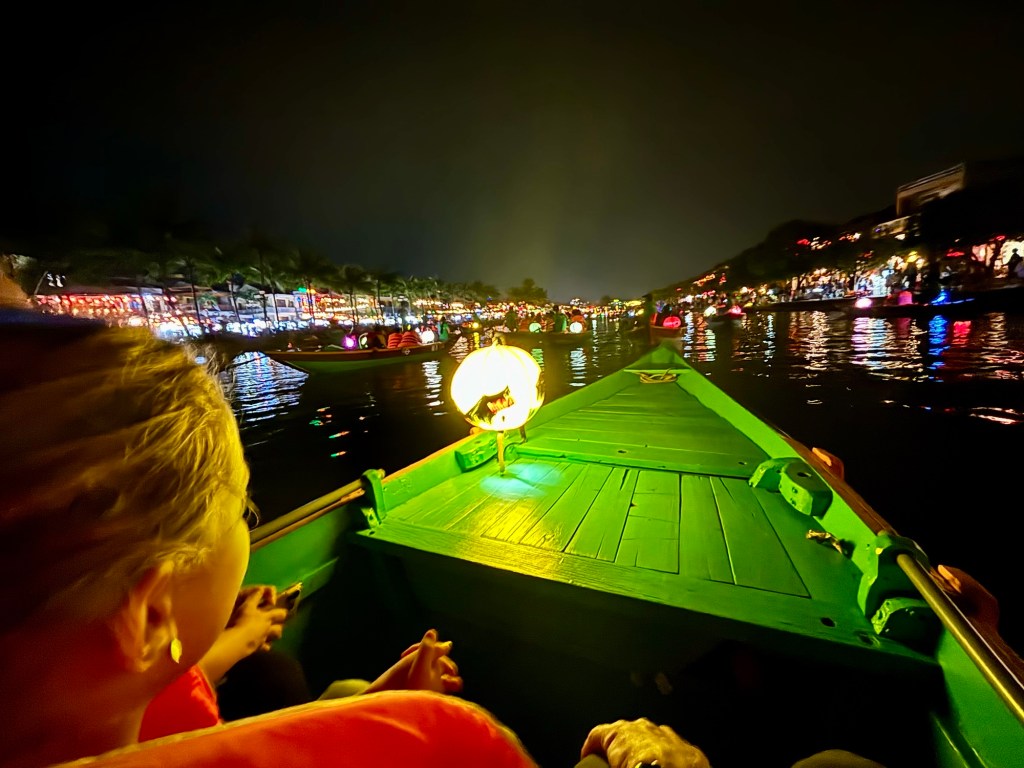 Still, we took regular scooter rides in the rice fields and around town, and tested out various spots on the beach to find our favorite. Mira even convinced the parents to swim far out in the South China Sea in our clothes.  Also, Mira was the lead designer for a mosaic table, and we finally indulged in various spa treatments. Another highlight was going into the ancient town with our friends one night for the monthly full moon festival where we took a boat ride and released candle lanterns on the river while making a wish.