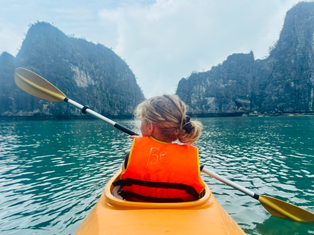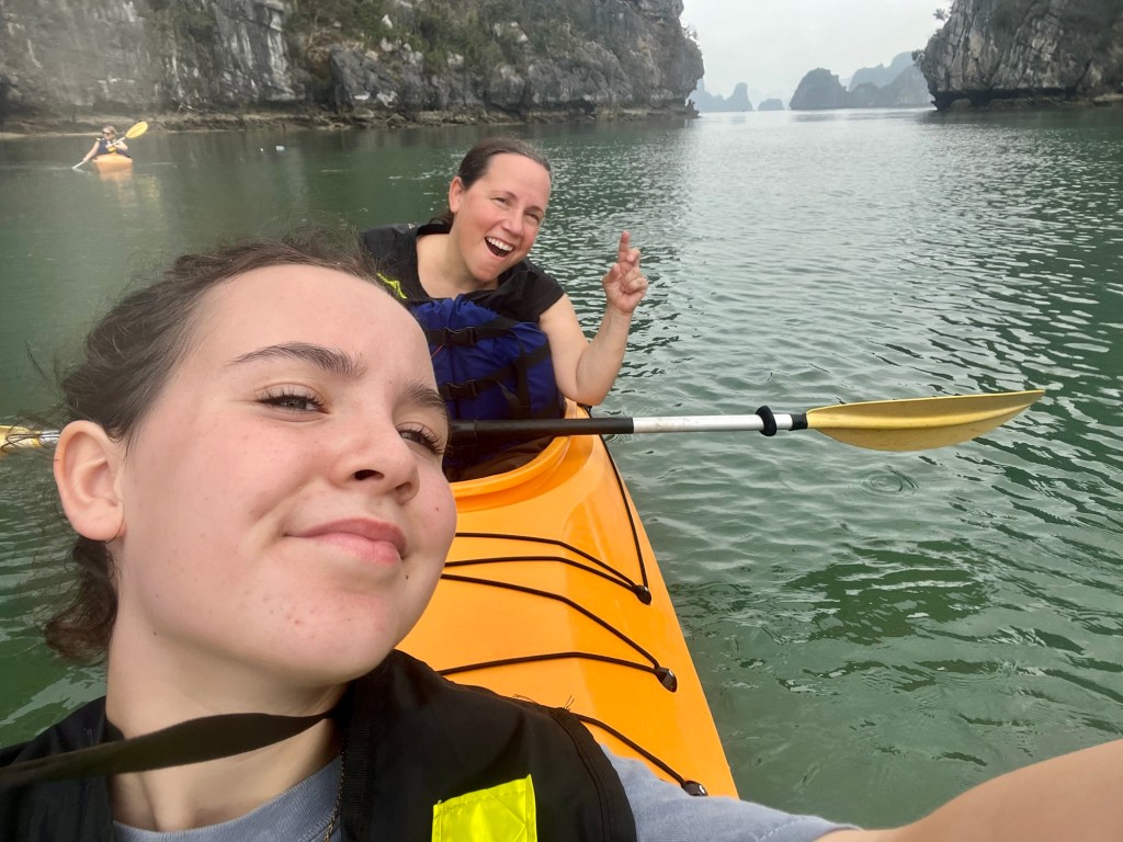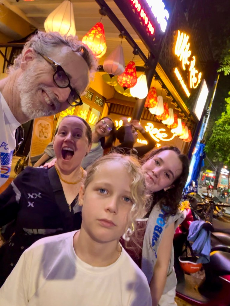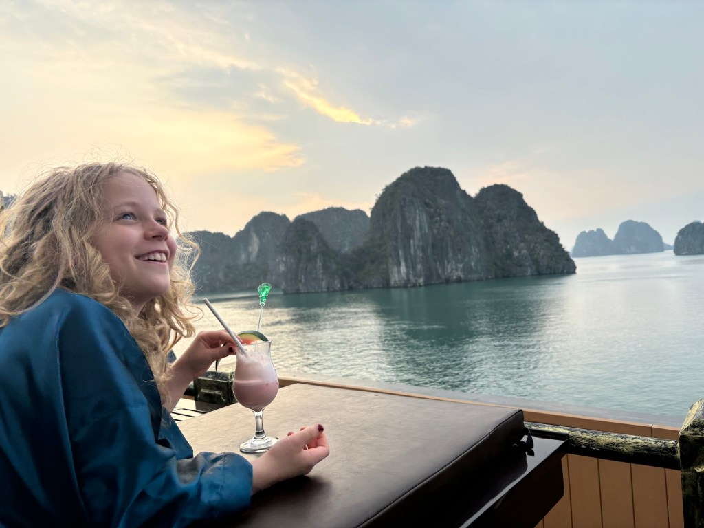 We went kayaking a couple times, visited a cave within one of the small islands, and Dennis took a boat trip to visit a remote oyster farm community that produces pearls and jewelry. We had incredible and varied Vietnamese food throughout. There was no wifi which was the best; it forced everyone to do crafts and talk to each other. The kids lived their best life with Dev really taking it up a notch by wearing the official cruise silk robe all over the boat (even to our last dinner) and getting a massage.