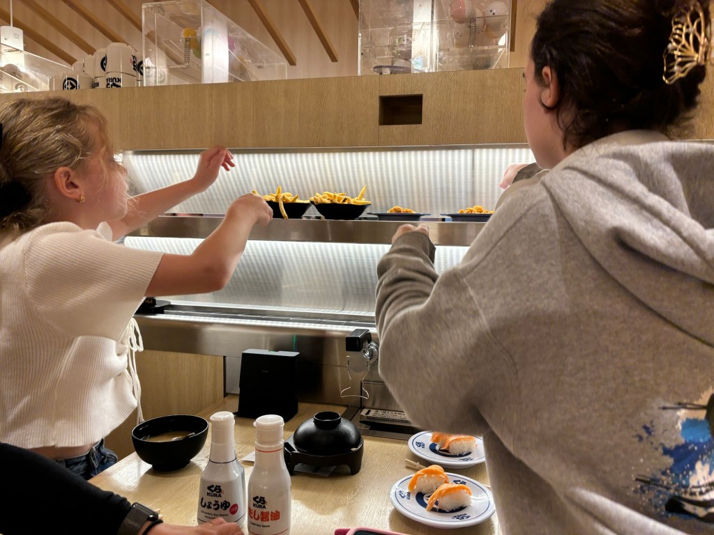 While I would like to say we went to all these incredible restaurants, we actually ate many of our meals at the phenomenal convenience stores – you can get everything there! At least we made it to the obligatory conveyor belt sushi restaurant (see video) and shaved ice.  Technology was a bigger goal for the kids so that meant several gaming cafes, a visit to Akihabara, and a trip to Tokyo Bay for an indoor amusement park that Dev found.  Luckily, it also included a beautiful front row ride on a monorail (see video).  We also went to a cafe with robots before visiting the iconic Shibuya crossing; it was a bit gimmicky, but cute. Probably one of our collective favorites was the subway system.  It is so easy to navigate, so well run, and we especially enjoyed the many different chimes for the doors closing. Dennis recorded many of them.