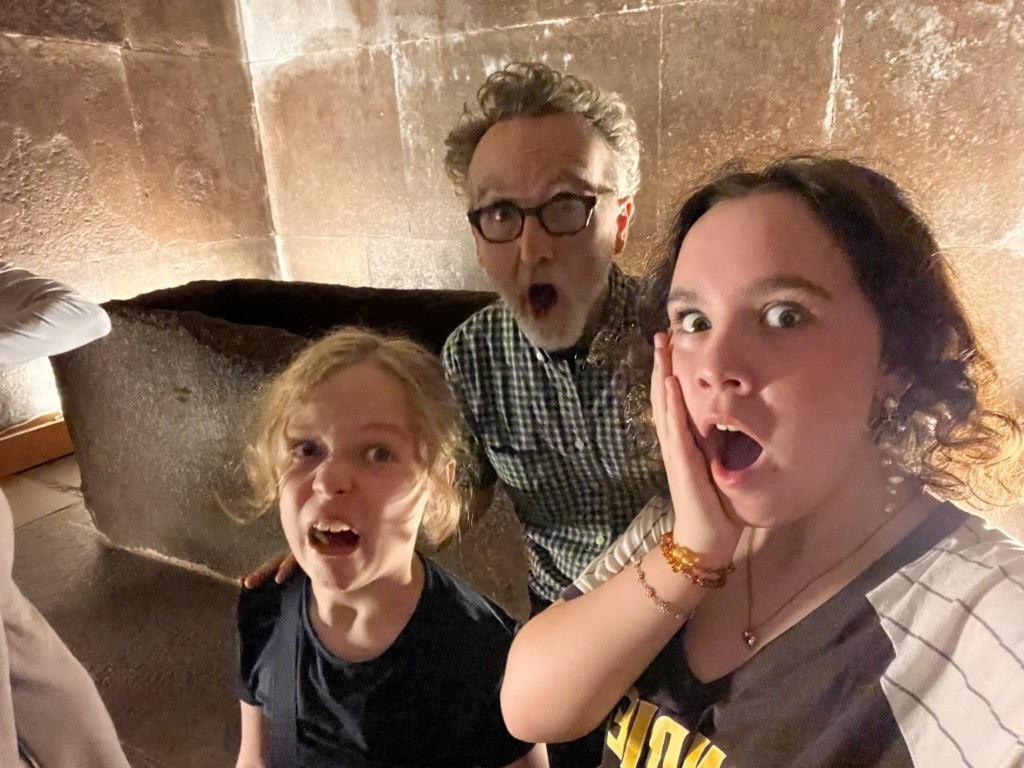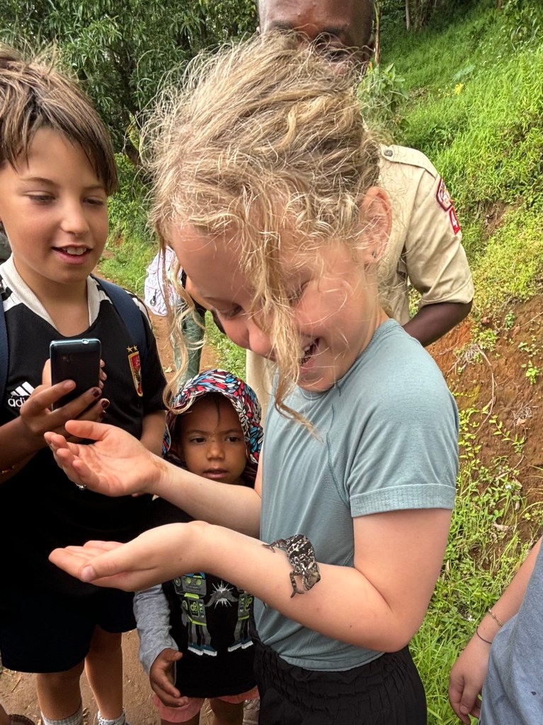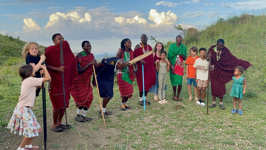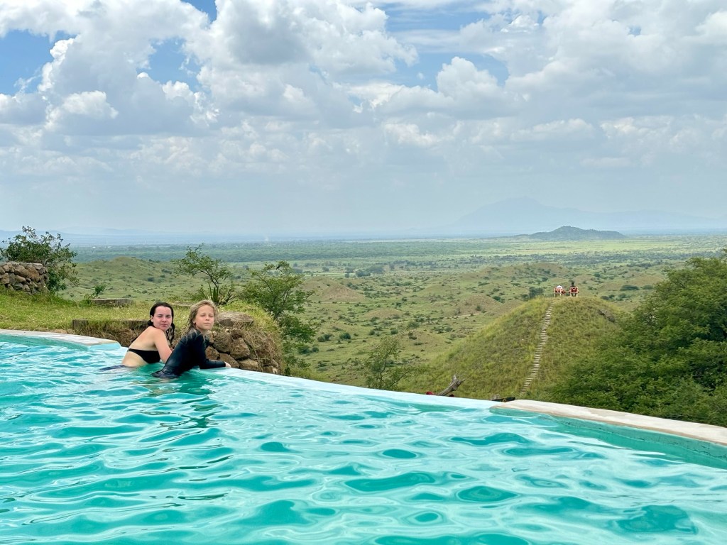 We then spent two nights in the Serengeti which was similarly spectacular. We saw many of the same animals but in a different way. The landscape is endless and beautiful, and some of the herds were enormous. We frequently had groups of animals surround us as they crossed the road. We were particularly moved by close-up encounters with large groups of elephants, zebras, and giraffes. We also got very close to some lions, Dev’s spirit animal and number one priority. We finished the day with a swim in the lodge pool overlooking the Serengeti.